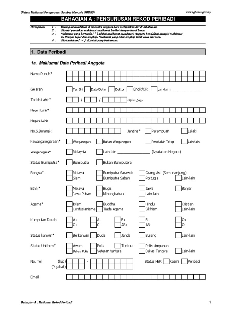 Borang Pengurusan Rekod Peribadi Hrmis Pdf